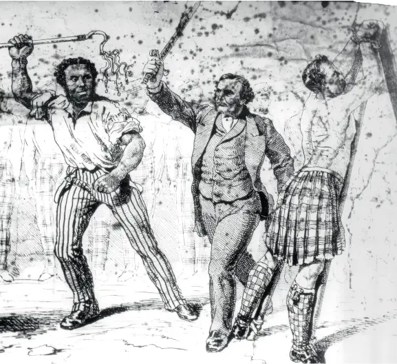 In addition to comments on his birth in Demerara, a number of contemporary statements were made about McLagan’s nationality and ethnicity. During the 1868 election his opponent suggested that McLagan was ‘not a Scotchman’ and a racist cartoon was circulated in the constituency depicting McLagan as a slavedriver with a blackened face, flogging a topless man in a kilt. The cartoon played on the status of McLagan’s father as an enslaver, local perceptions of McLagan’s racial identity and statements McLagan made during the 1868 election in support of flogging in the military.